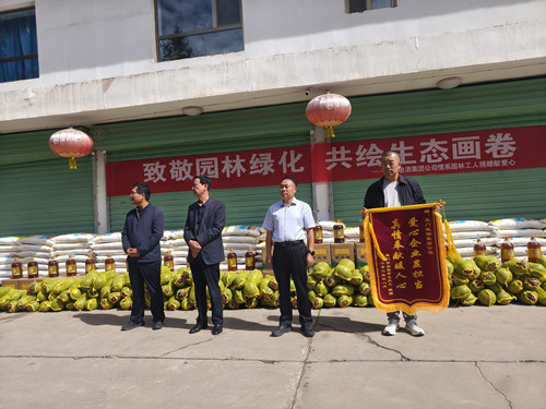 活動現場氣氛熱烈,綠化工人代表手持繡有“愛心企業顯擔當,真情奉獻暖人心”的錦旗,鄭重贈予我公司,用鮮艷的錦旗表達最誠摯的謝意。市委常委、組織部部長、統戰部部長謝祥出席捐贈儀式。公司副總經理張建軍代表敬酒集團向長期奮戰在城市綠化一線的全體工作人員致以誠摯的問候和衷心的感謝,并將物資送到每一個綠化工人手中,感謝他們長期以來為城市綠化和環境美化所付出的辛勤努力。